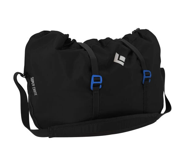 Taking a traditional rope bag design and adding an innovative funnel-shaped rope tarp for super-easy loading, the Black Diamond Super Chute combines simplicity with practicality. Barrel compression straps and a courier-style shoulder strap allow for compact, comfortable carrying to and from the crag with up to an 80-meter rope, and two internal tie-in points expedite rope management.