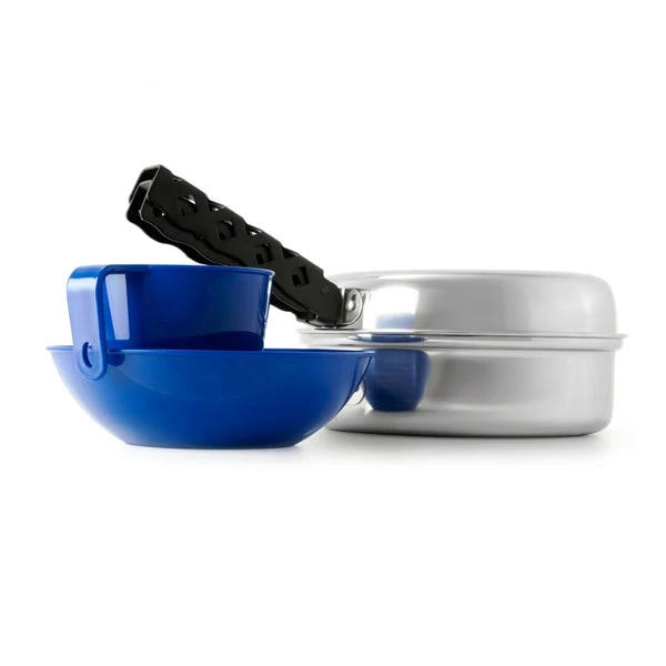 Glacier Stainless steel’s unrivaled durability and superior heating characteristics allow it to cook evenly over any stove or flame. Easy-packing, nesting design includes dual-use frypan/lid, pot, Cascadian cup, bowl, pot gripper and mesh stuff sack. Exclusive DiamondBack Gripper, attaches securely to exterior brackets while preserving both interior and exterior pot finishes.Spiral-turned bases grip stoves and grills. Double-rolled rims increase stiffness and durability.