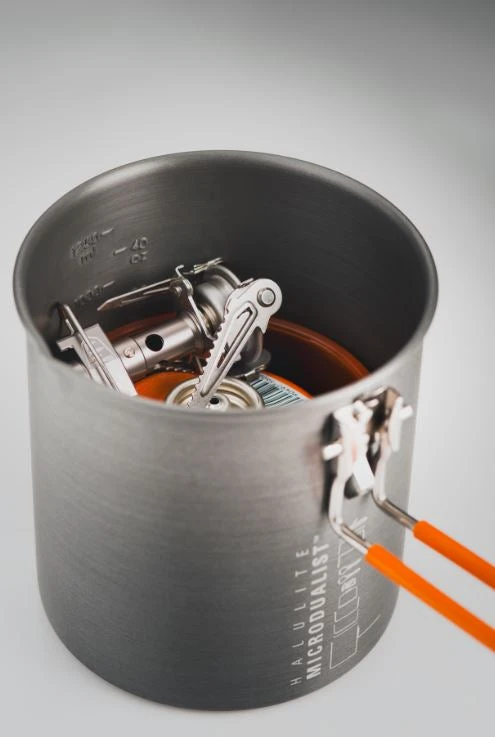 - Integrated nesting allows for ultralight stowing of micro stoves and fuel canisters (110 g)