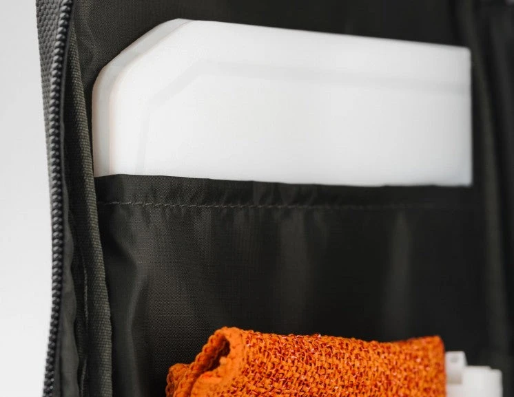 This 3 knife set includes a 4″ paring knife, 6″ santoku and 6″ serrated knife, a cutting board, bottle for soap and a two sided dish cloth to keep everything tidy. Weighing in at just under 2 pounds, this compact set included a nylon case to keep all your prep gear securely and neatly organized no matter where your knife skills are in high demand.