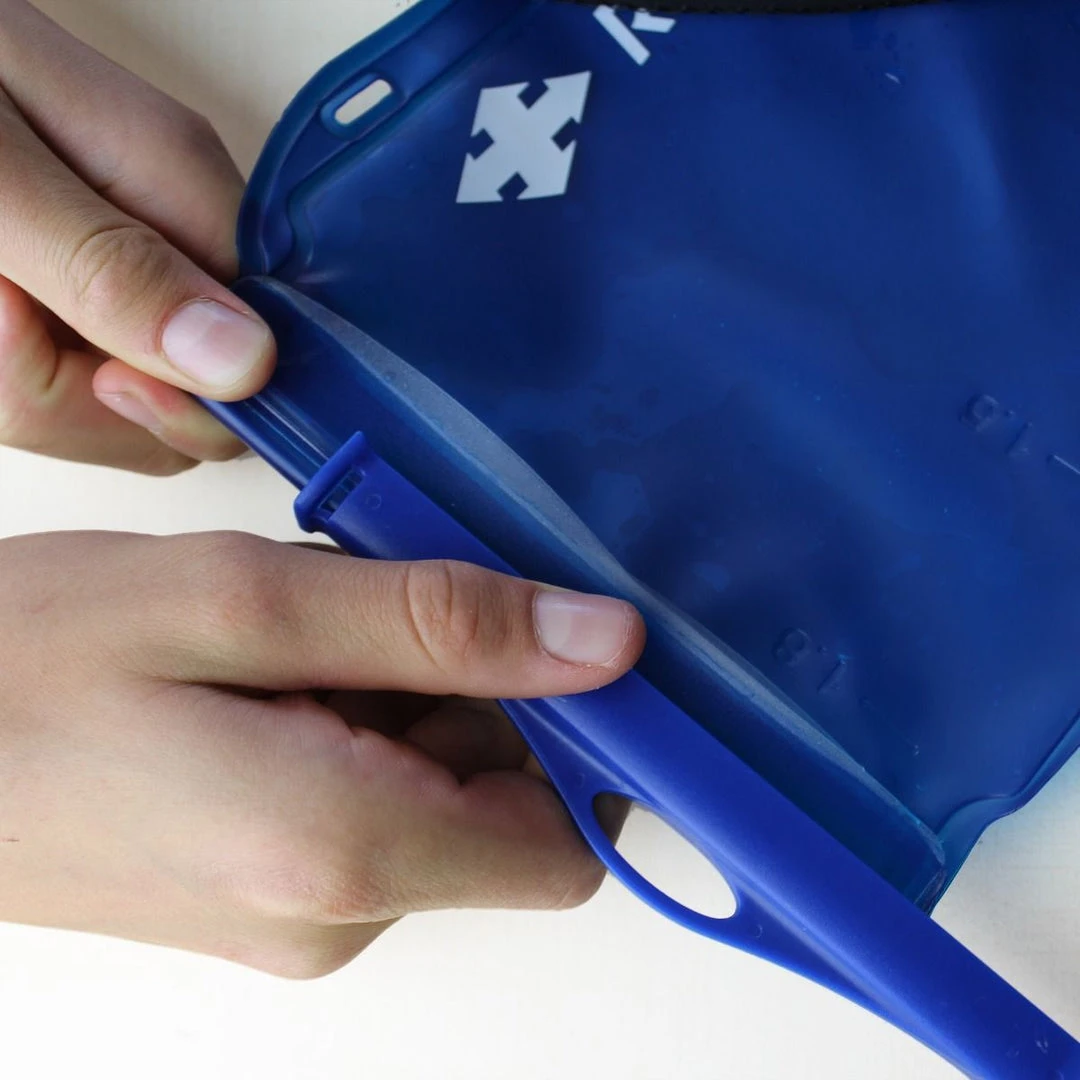 These sizes of hydration reservoir are suitable for all packs and vests. The bite valve has a locking system to ensure no annoying dribbles.