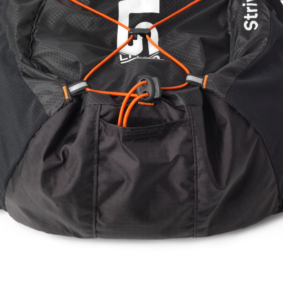 The Strive Mountain Pack is very comfortable with a wide and comfortable waist belt and double sternum straps. It is flexible when packing your gear thanks to the roll top and compression straps. The running pack has a weather proof roll top closure, a reinforced bottom and zippered pockets for smaller items. The materials that the running pack is made of are quick drying and it is easy to hang to let dry. This really is your go to running pack for that weekend race or running between mountain huts with friends.