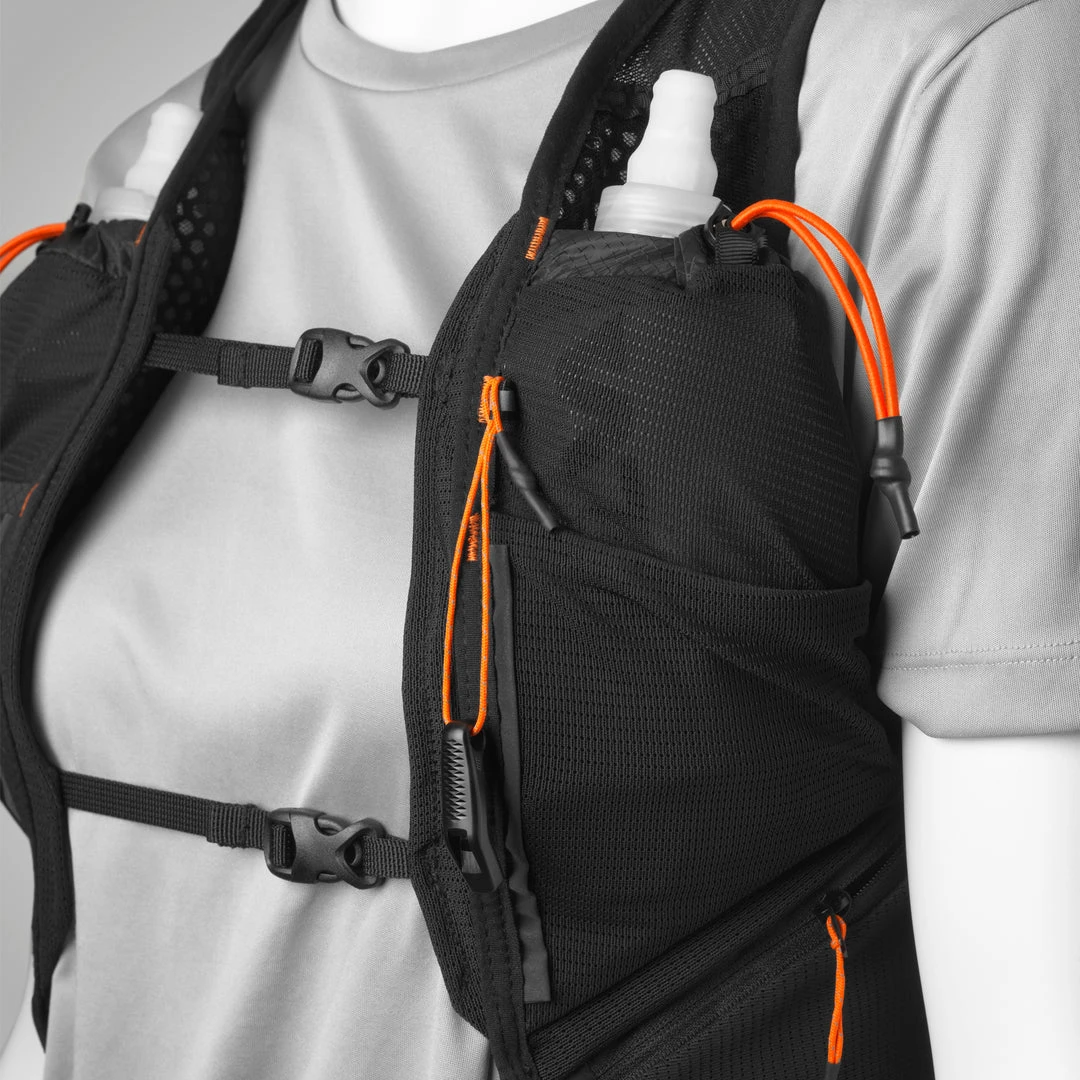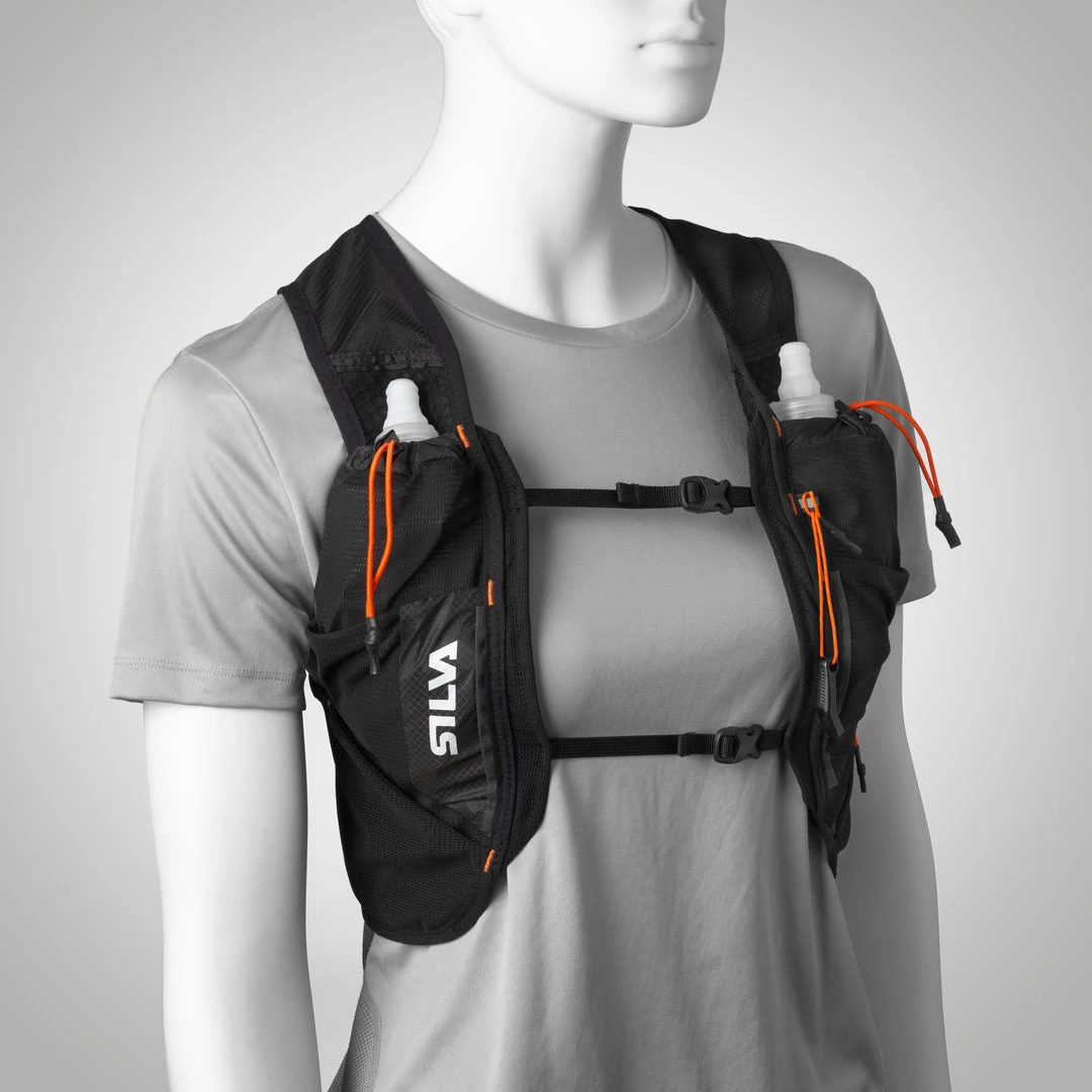 When speed and seconds matter, details matter too. The Strive Ultra Light running vest has four pockets in the front for easy access to your essentials while maintaining your speed. Two of the front pockets are made for Silva soft flasks (not included), secured with compression straps. The other two pockets are perfect for gels and bars – and your waste when you are on your home stretch. There are also two pockets on the side; one in mesh and one zippered. These will keep your phone safe (the zippered pocket is waterproof) and also fit a pair of gloves, a beanie, compass, gels and bars. The back pocket is medium sized and can be used for that extra jacket or a headlamp battery.