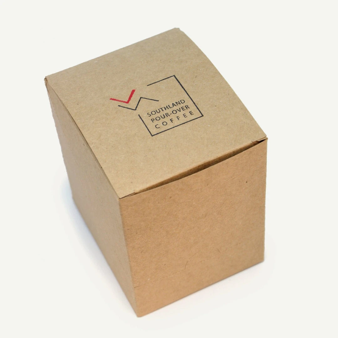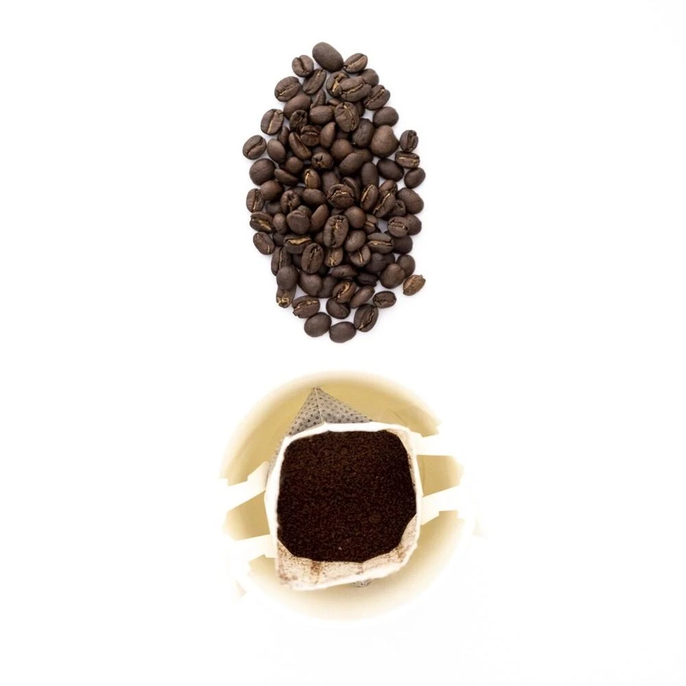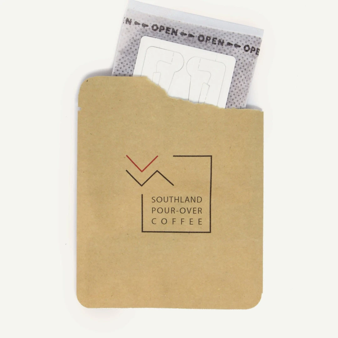 A box of 10 individually packaged pour-over filters, pre-filled with a single origin Guatemalan coffee.